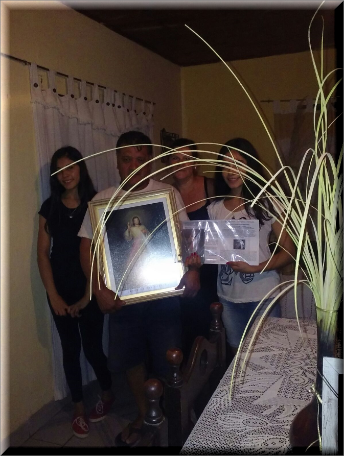 Pero siguiendo el carisma de la Misión del Santo Rosario, de acuerdo a lo que Mercedes nos sugería, surgieron las visitas a enfermos llevandole material catequístico, el rosario, estampas para hacerles más liviana su cruz. Y hacemos peregrinar la imagen de la Virgen de Lourdes que nos enviara Mercedes.